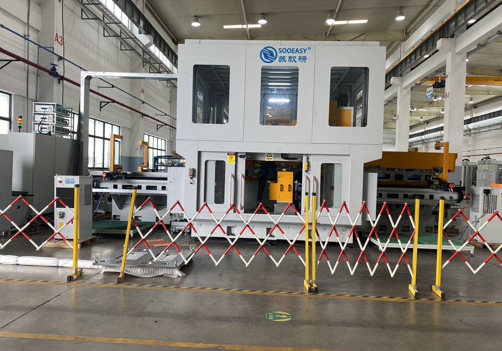 電池殼體CNC組合機床 電池托盤機加龍門CNC 電池殼體機加組合機床第1代 電池殼水冷板CNC組合機床加工 蓄電池盒總成FSW去飛邊 蓄電池盒總成CNC鉆孔及鋁屑收集